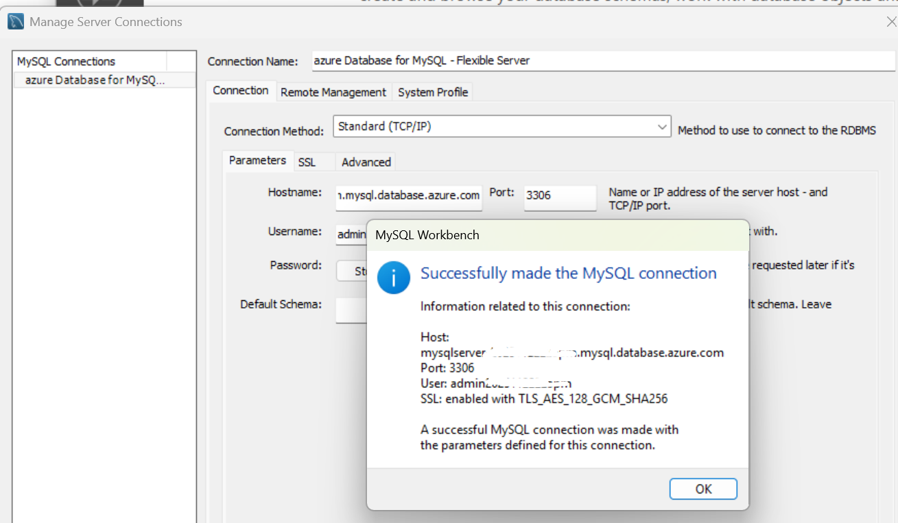 SSL/TLS: SSL is enforced and TLS version is 1.2. This can be changed after server is created. Learn more
